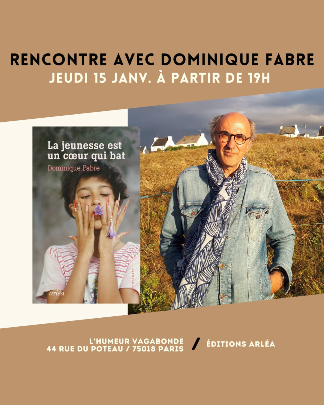 💥 Jeudi 15 janvier à partir de 19h rencontre avec Dominique Fabre autour de son dernier livre “La jeunesse est un cœur qui bat” publié aux éditions Arléa 💥