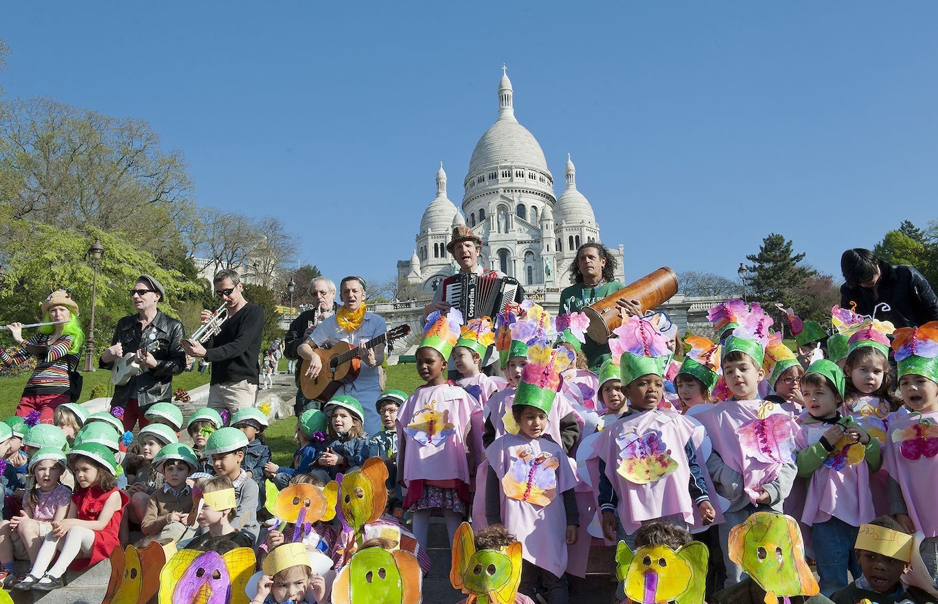 - Paris 18ème arrondissement. La butte Montmartre . Carnaval d’enfants devant la Basilique du Sacré-Coeur * Paris 18th district. Montmartre; Children’s carnival in frontl the Sacré-Cœur Basilica