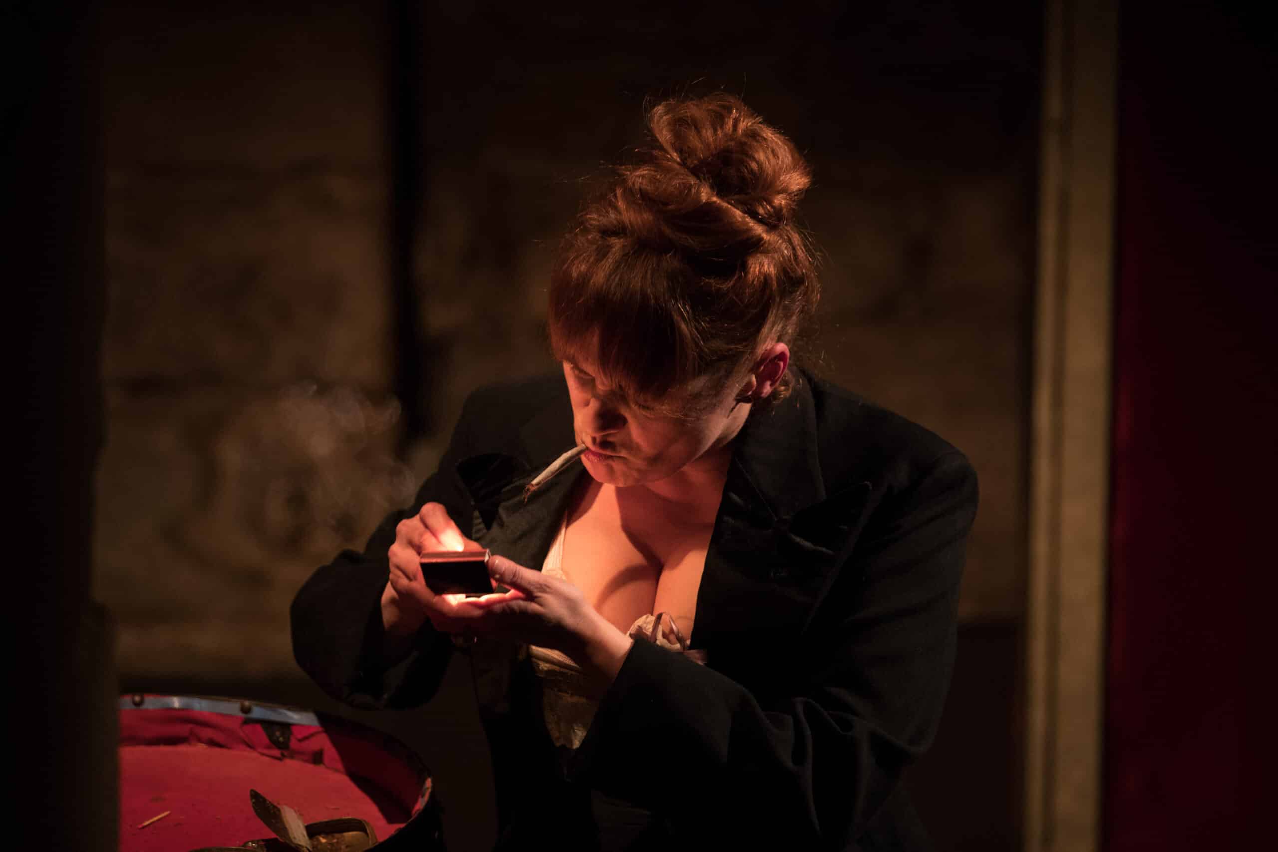 C’est cette Goulue que l’on retrouve au début du spectacle interprété par Delphine Grandsart ; une femme seule, lourde, épuisée par la vie, rongée par la misère. Durant une heure, la comédienne (prix de la meilleure interprète féminine aux Trophées de la Comédie Musicale 2018) incarne une Louise Weber plus vraie que nature, aussi libre et moderne qu’effrontée. La performance est époustouflante, et Delphine Grandsart, accompagnée à l’accordéon par Matthieu Michard, embarque avec elle un public tantôt charmé, tantôt amusé, tantôt choqué, passant du rire aux larmes, mais jamais indifférent, tant et si bien qu’on a envie de dire que c’est un spectacle « qui en a ». Quelle prouesse et surtout quelle intelligence de la part de l’auteure, Delphine Gustau, que de nous faire remonter le temps pour rencontrer à la fin du spectacle Louise Weber enfant.