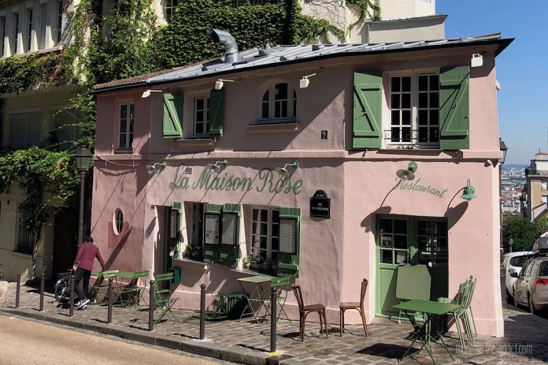 Remontons sur le haut de la Butte, à l’angle de la rue des Saules et de la rue de l’Abreuvoir : La Maison Rose est sans doute aujourd’hui la plus photographiée du quartier, après avoir été la plus souvent peinte. Et sa couleur n’y est évidemment pas pour rien, puisque la Maison Rose est bel et bien rose, depuis que Laure Gargallo, la première propriétaire du lieu, l’ai fait repeindre après un séjour en Catalogne dans les années 1910. Inutile d’aller chercher plus loin l’origine de son nom !