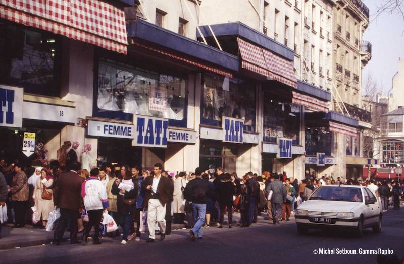 - La boutique ‘Tati’ sur le boulevard Barbès, dans les années 1980, France.