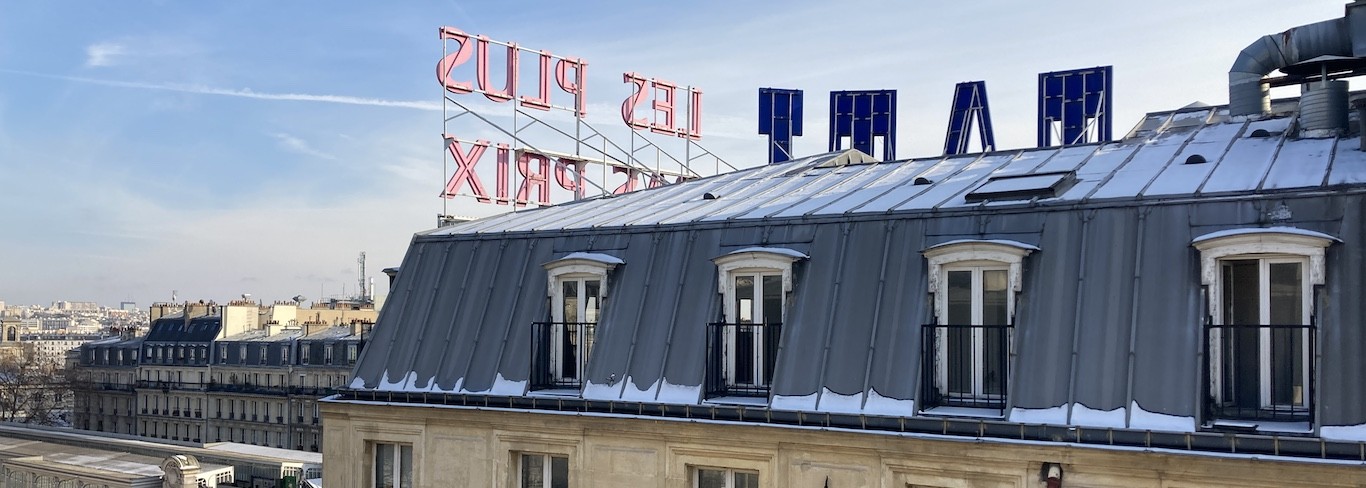Si les façades ont relativement peu évolué durant « l’ère » Tati, ce n’est pas le cas de l’intérieur des bâtiments, certains planchers ayant même changé de niveau au fil du temps. D’un point de vue architectural, le projet prévoit donc une remise en valeur du bâtiment d’angle, véritable figure de proue du quartier, afin de conserver les façades en pierres de taille et les vitrines de magasins. Un nouveau socle fera le tour de l’îlot, permettant aux arches et aux entresols commerçants de rester fidèles au bâti d’origine. Côté boulevard de Rochechouart, les façades faubouriennes seront ravalées, tandis que de plus larges vitrines commerçantes seront installées. La partie arrière de l’îlot située rue Bervic, qui servait jusqu’alors de zone technique aux magasins Tati, sera quant à elle détruite puis reconstruite avec de grandes vitrines ouvertes sur l’espace public et une partie haute, inexistante à ce jour, qui abritera des logements. Tandis que la passerelle de la rue Belhomme disparaîtra, le bâtiment de l’autre côté de la rue sera transformé en résidence hôtelière. Enfin sur le toit, deux grandes terrasses végétalisées et partagées seront aménagées, une à destination des logements et l’autre pour les bureaux. Beaucoup regretteront sans doute qu’elle ne soit pas accessible au public, ne restera plus qu’à se faire inviter par un résident ! Au chapitre des bonnes nouvelles, on notera toutefois que la mythique enseigne Tati installée sur le toit de la structure haussmannienne sera bel et bien conservée.